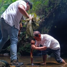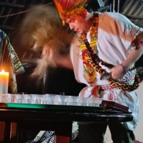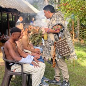 Energy cleansing after the ceremony with the guayra plant by the shaman.